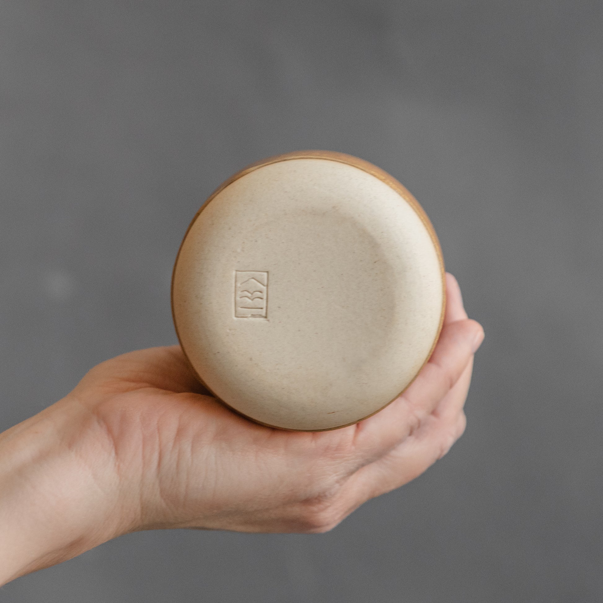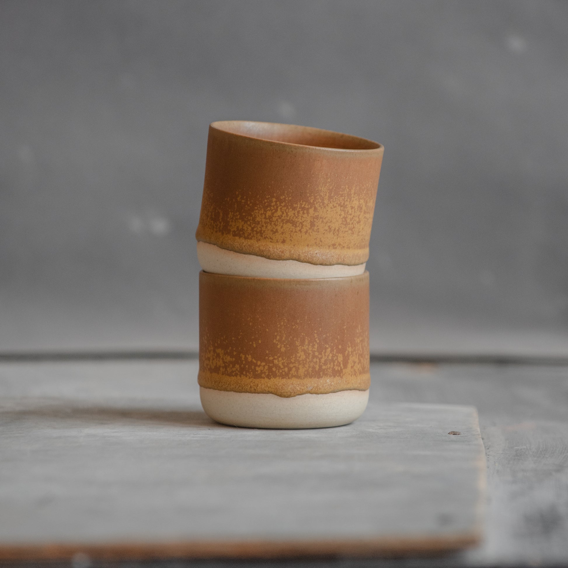 This is a set of FOUR 8oz сoffee tumblers and FOUR 9oz mugs in Golden Ochre.
