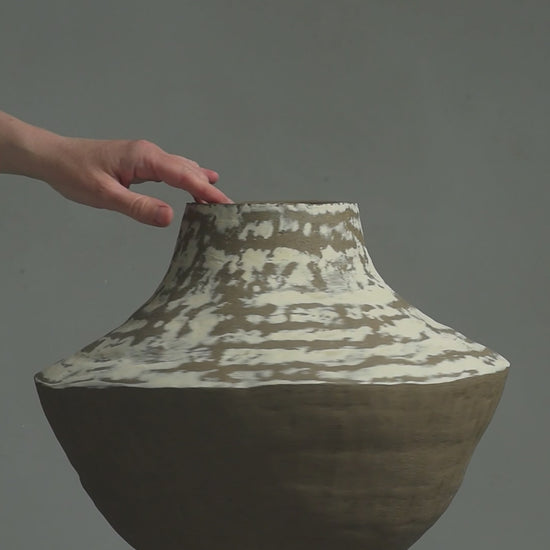 Big VASE in minimal style, textured, designed in warm colors for all interiors, hand-built ceramics, stoneware, waterproof, art collection