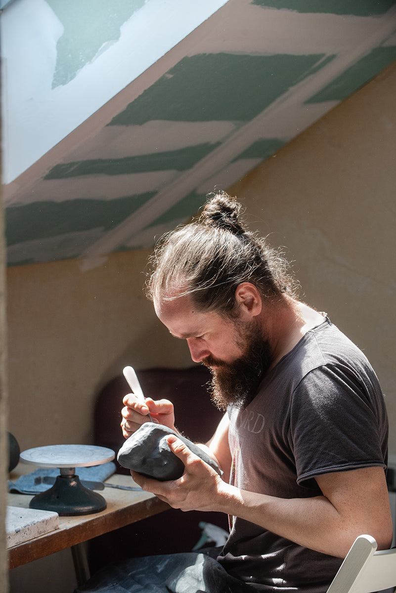 The wabi-sabi vase is entirely hand sculpted by my hands, not wheel-thrown or casting.